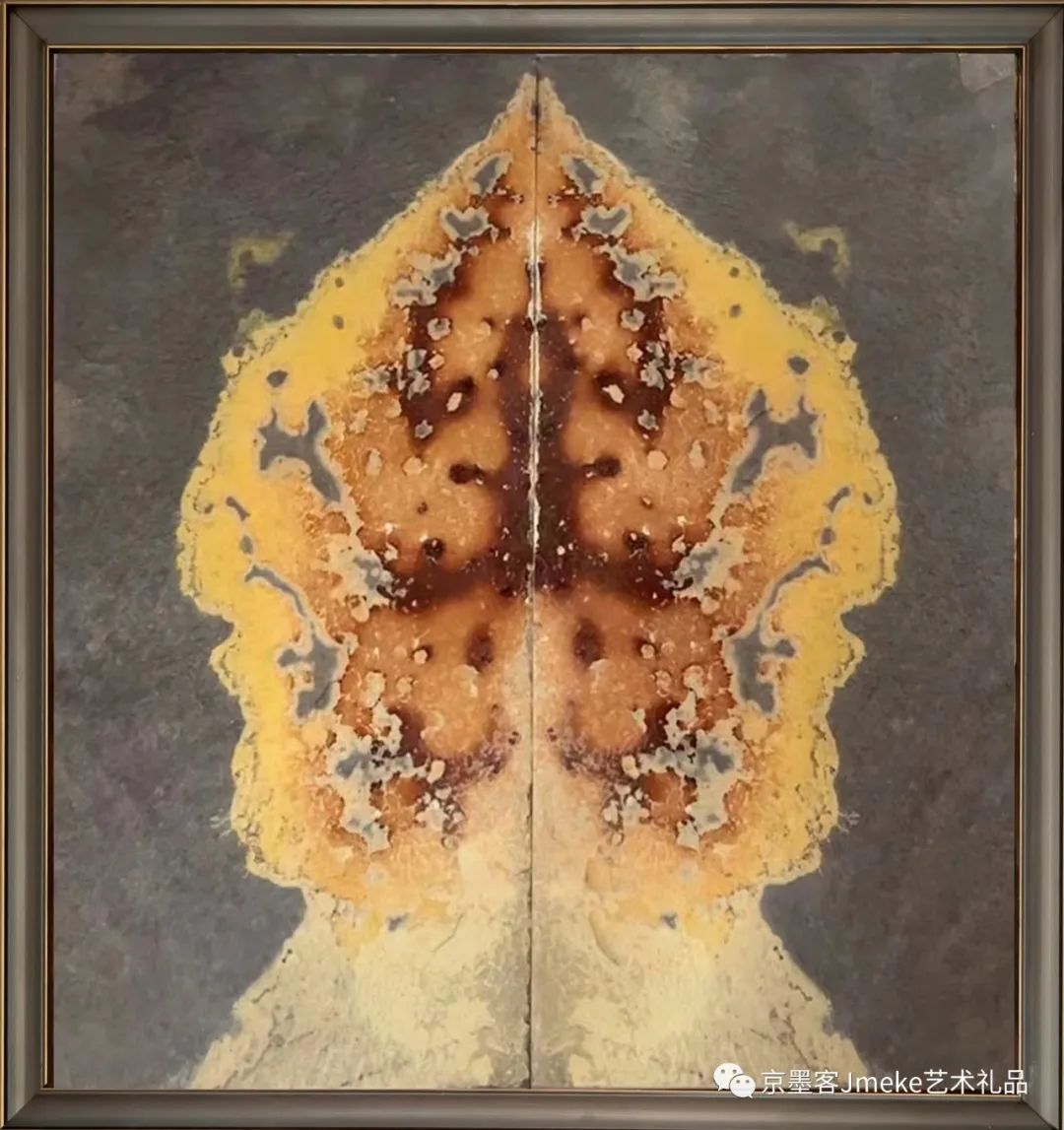《Double Phoenix Pilgrimage》此类页岩石画面的色彩,与图形成像类别均十分丰富,有些天然画面可直接成像,有的可以人工手绘添加少许,画龙点睛即可成画。可以说,页岩石表面是难得的天然矿物质画布。页岩是一种沉积岩,是组成地球岩石圈的三种主要岩石之一。页岩是由黏土脱水胶结而成的岩石,以黏土类矿物为主。具有明显的千层薄层理构造。《broken cocoon butterfly》《True and False Monkey King》页岩成分复杂,除粘土矿物外,还含有许多碎屑矿物和自生矿物,经数亿年压实作用、脱水作用、重结晶作用后形成,故色彩丰富,图案多种且奇特,观赏效果极佳。页岩石的表面可以进行二次艺术创作,如绘画,书写,雕刻