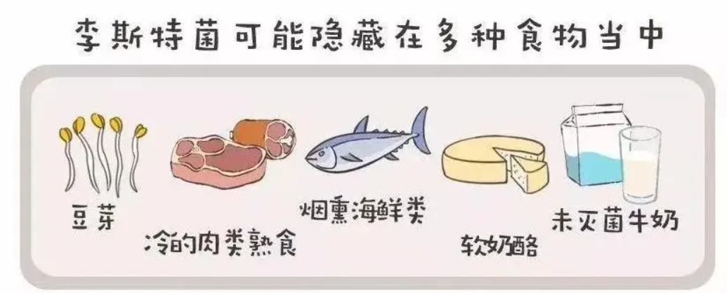 常见食物来源:软奶酪、生豆芽、甜瓜、热狗、肉酱、熟肉、熏海鲜和生(未经高温消毒)牛奶。