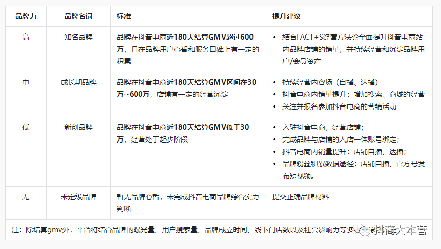 抖音电商将每月5号更新各个品牌的抖音电商品牌力档位。(由于系统调试原因略延迟,辛苦商家耐心等待)