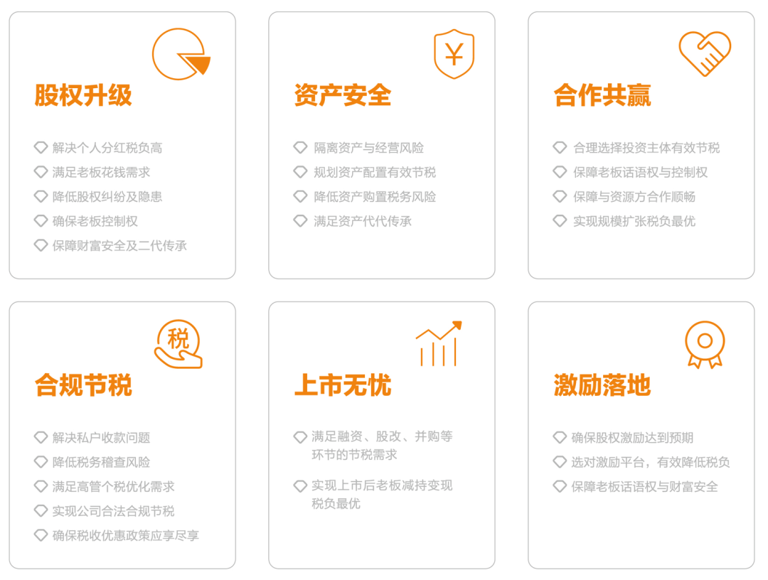 团队老师都拥有超十年财税咨询服务经验,通过股权架构搭建,已为100+优秀企业提供税务合规与节税的专业服务,涵盖制造、建筑、房地产、医药、电商、物流、贸易等诸多行业。