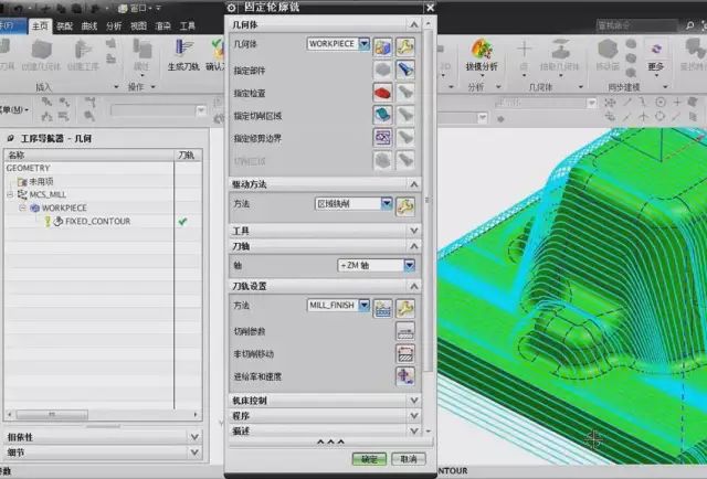 使用fixed-contour操作,尤其是使用area milling时,如果有破面或者情况特殊的面相交,偶尔会出现“漏刀“的情况,即刀具扎入几何体内,有时候是垂直,有时候是螺旋,也很可怕,好在这种情况不是很多,往往出现在UG某些不稳定版本。