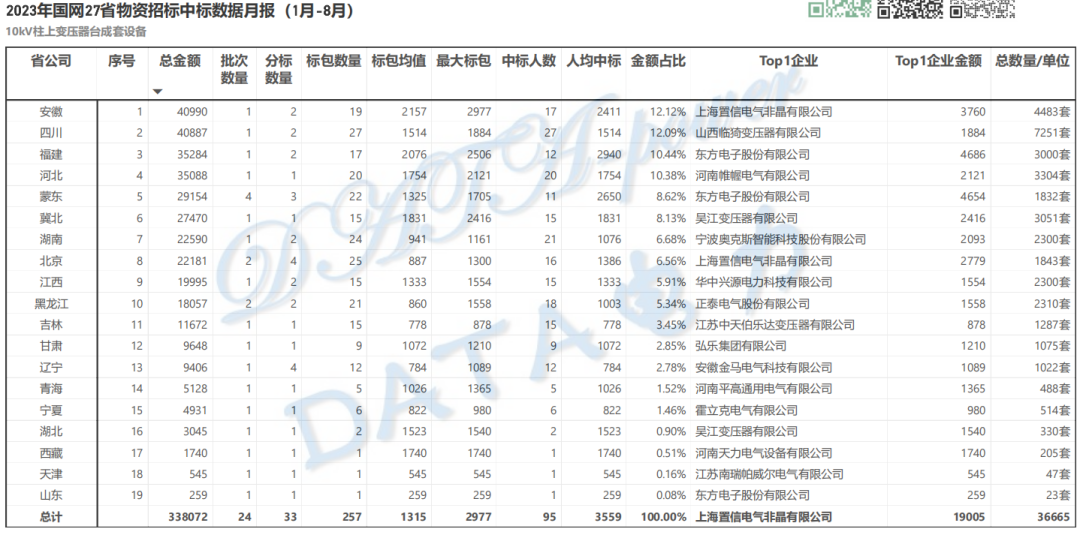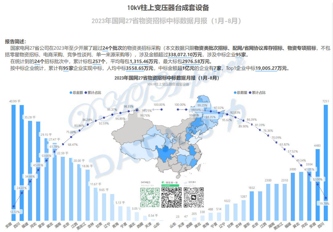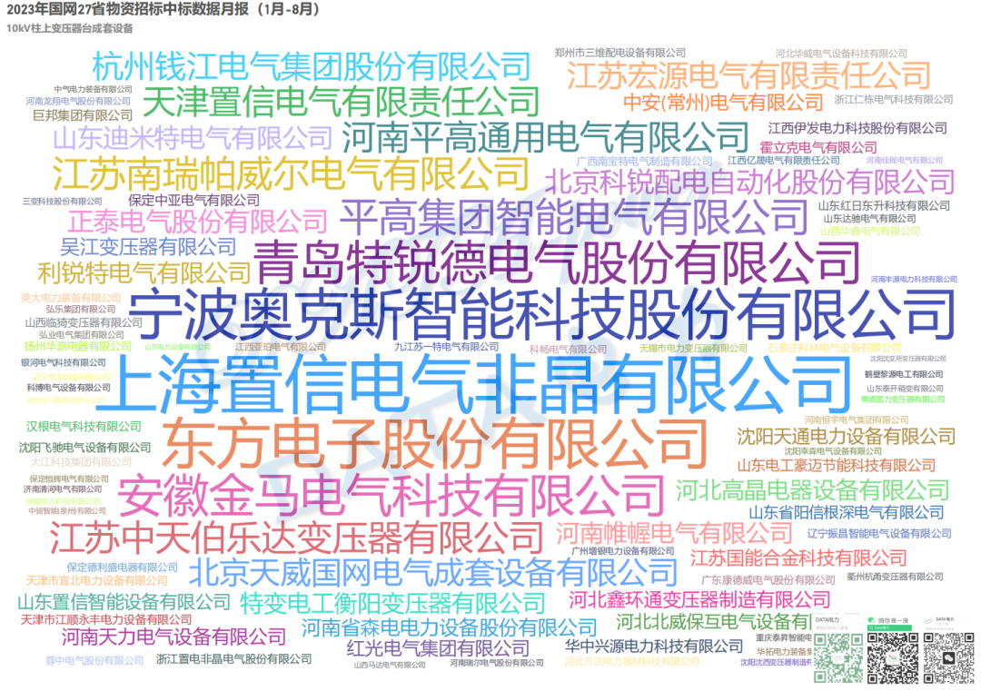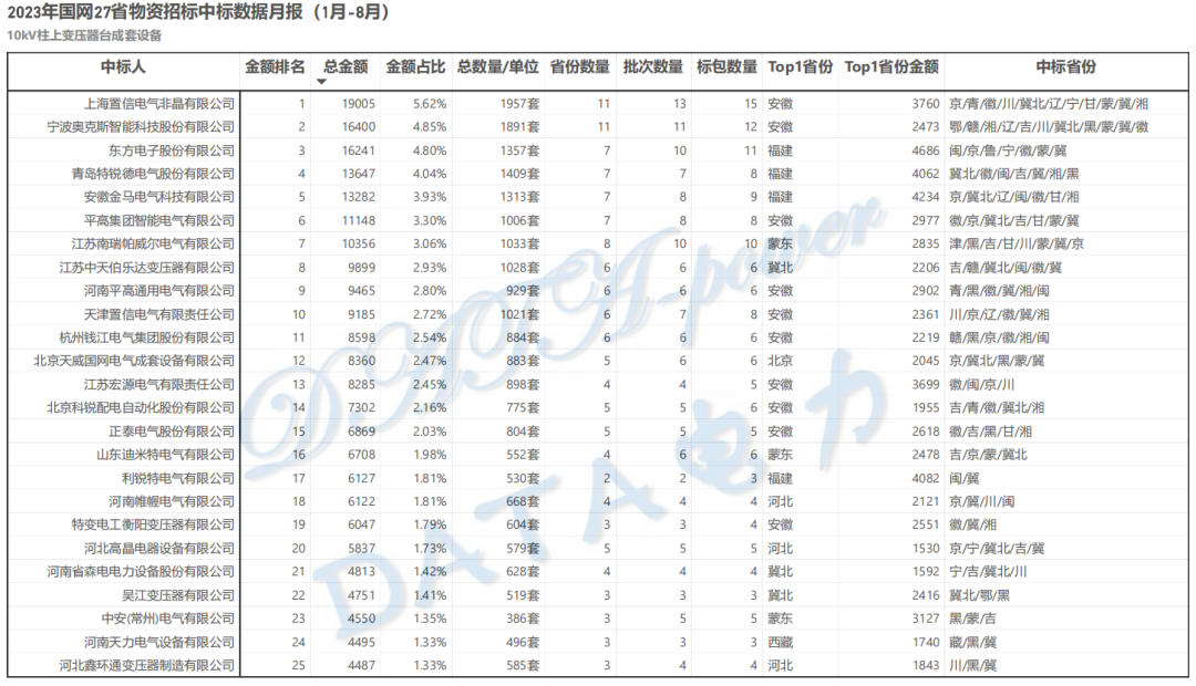 10kV变台成套设备 | 国网27省1-8月中标数据榜单