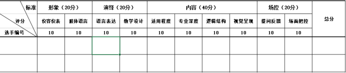 呈现艺术 (10分) | 色彩搭配协调,视觉效果好,符合视觉心理;文字、图片、音频、视频、动画切合教学主题,和谐协调,配合适当 | ||