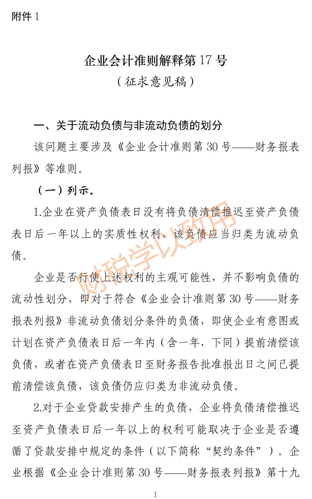 附件:1.企业会计准则解释第17号(征求意见稿)