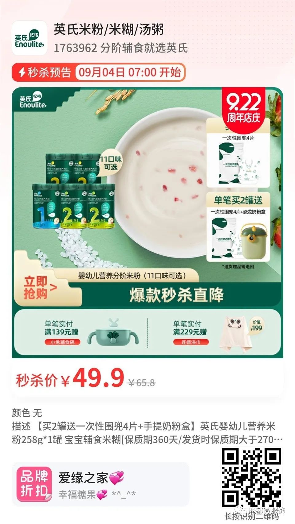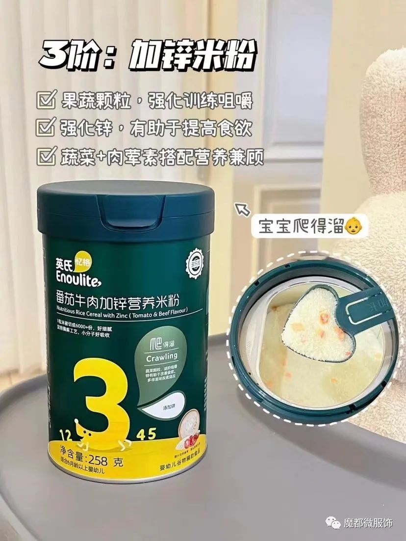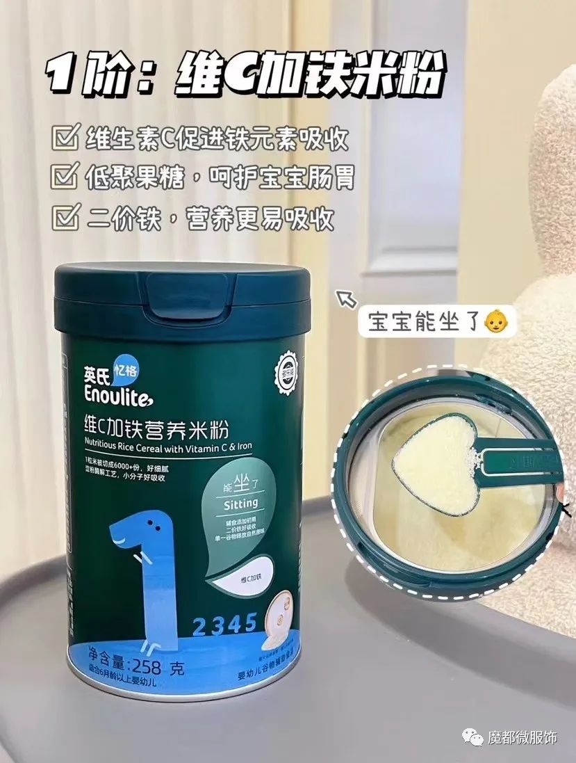 ?添加易吸收二价铁,宝宝吸收率更高,还添加了英氏的独特配方益生元,更好吸收营养!
