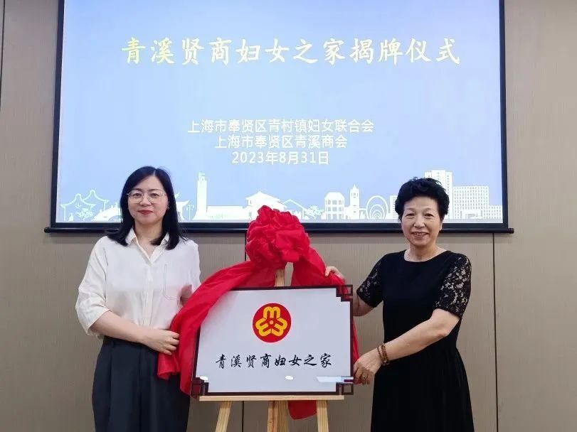 吴前文和张品莲共同为青溪贤商妇女之家揭牌。