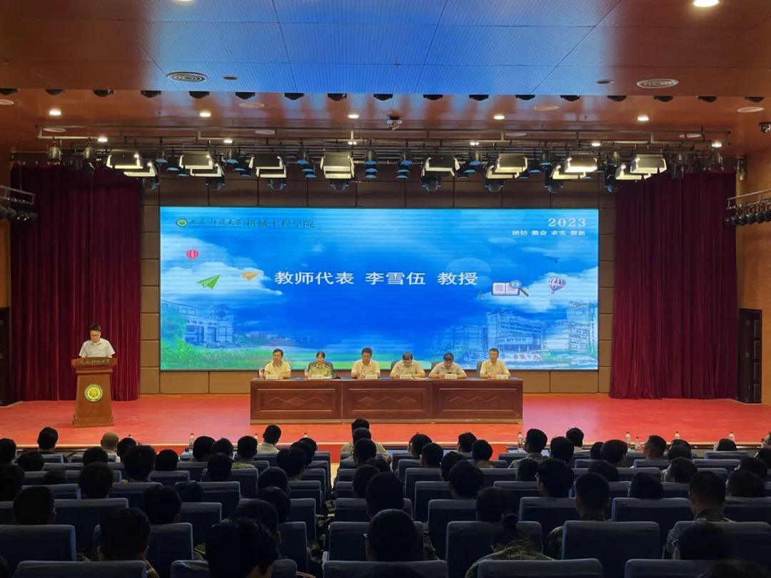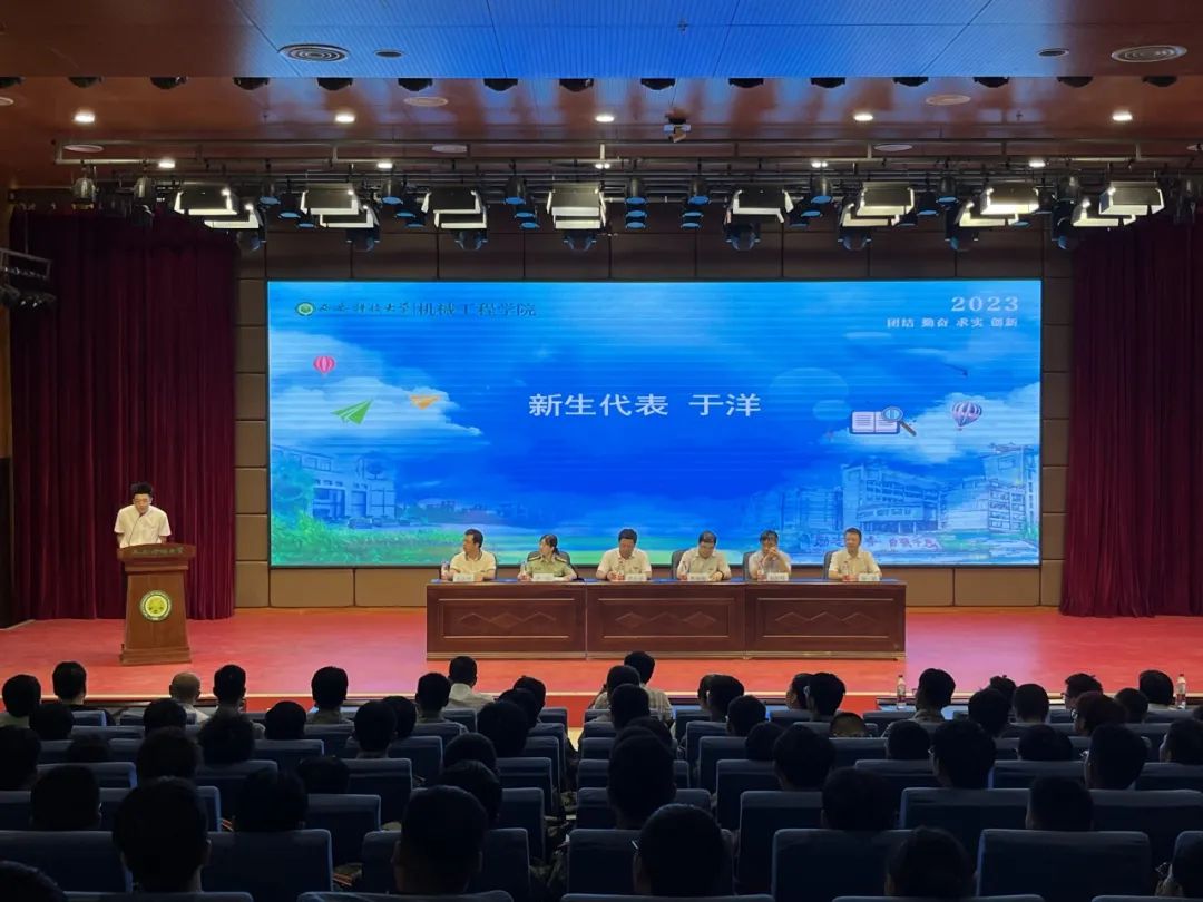 9月3日晚,机械工程学院2023级本科生开学典礼暨专业介绍会在临潼校区骊山校园煤炭科技中心一楼报告厅举行。学院领导班子成员,系主任、教工党支部书记,学工办、实验中心、创新创业办公室主任,全体辅导员、新生班主任以及2023级全体新生参加了典礼。学院副书记尹弘主持典礼。
