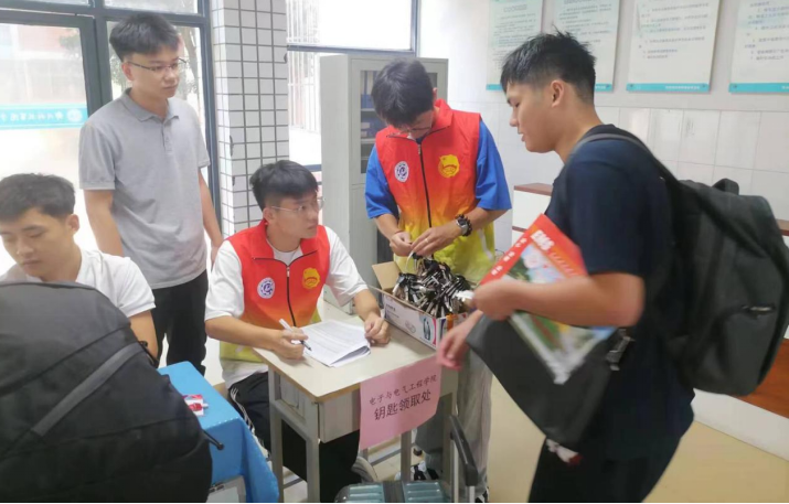 上午7时,迎新工作正式开始,道路指引、登记注册、行李搬运、组织宣传一应俱全,在老师和志愿者的共同努力下,新生们顺利报到。