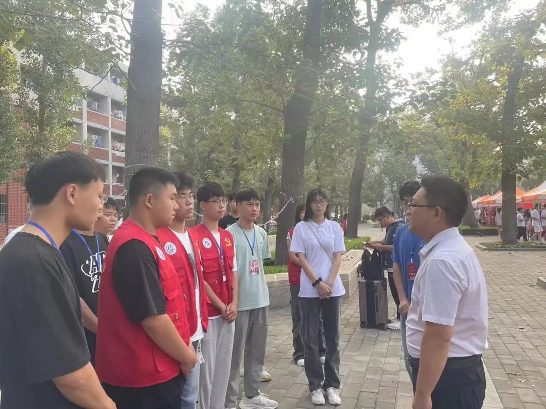 为顺利完成23级专升本新生入学工作,学院领导们高度重视、老师们精心安排、志愿者团结协作,迎新准备工作井然有序进行。9月3日电子与电气工程学院学工办主任邢振国、全体辅导员来到学院迎新报到点与迎新工作人员进行迎新工作部署和具体工作分配。