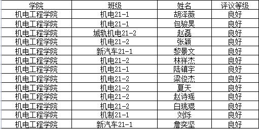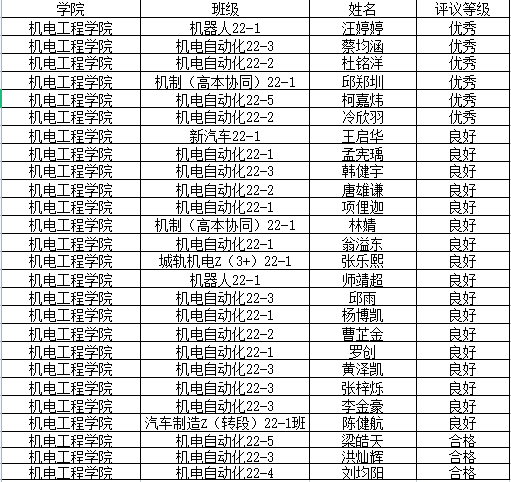 为增强学生会骨干履职能力,加强我院学生骨干的责任感和使命感,增强干事综合能力以及加强机电工程学院学生会的自身建设,机电工程学院学生会开展了2022-2023学年第二学期考核评议。由学生会指导老师、主席团和各部门负责人根据政治态度、工作态度,工作效率、日常工作表现等方面对学生骨干,干事进行评议,现将考核结果公示如下: