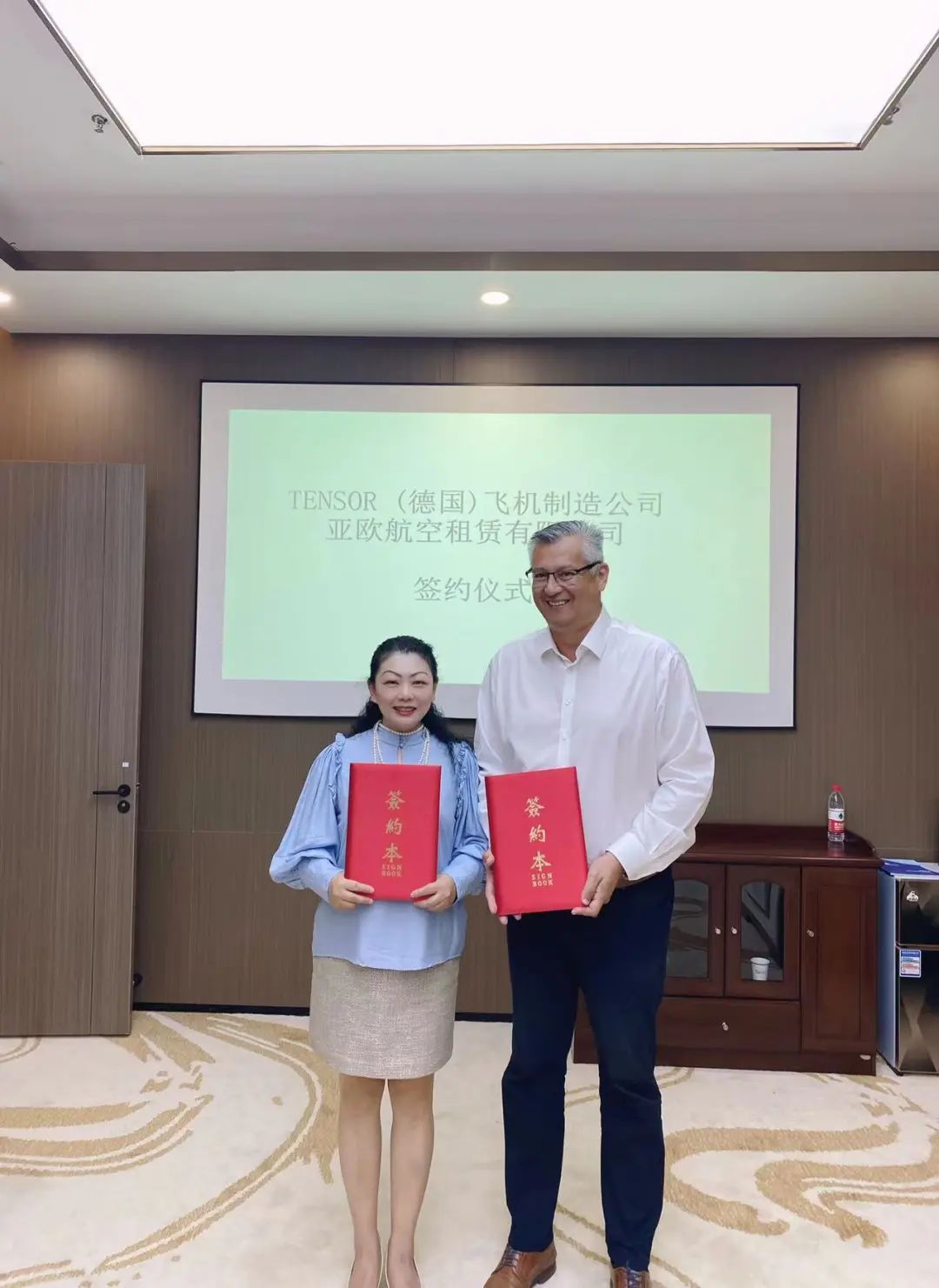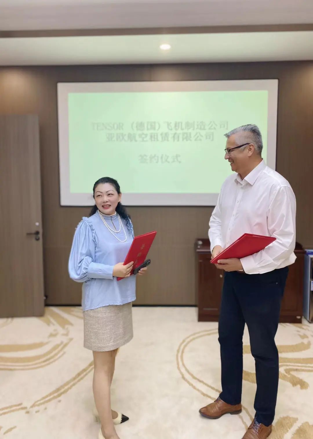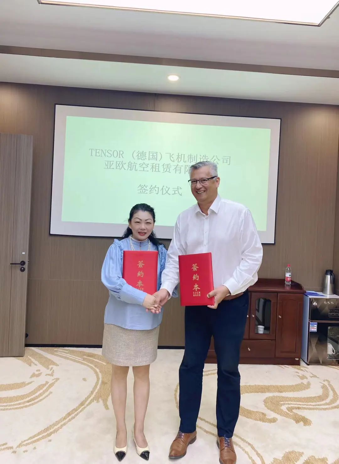 集团运营高层及技术团队接待了Hubertus总裁先生,Hubertus总裁先生对集团的专业技术团队予以了赞赏和肯定,对合作开发的飞机制造项目进行了专题讲解,8月23日下午集团和德国TENSOR飞机制造公司举行了合作开发项目签约仪式。