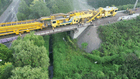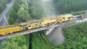 随着09505号桥梁清筛机缓缓移动