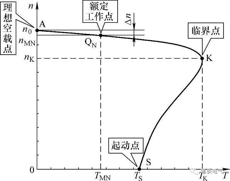 最大转矩又称临界转矩,此刻对应的转速称为临界转速。临界转矩与额定转矩的比值就是电机的过载能力,通常会大于2。