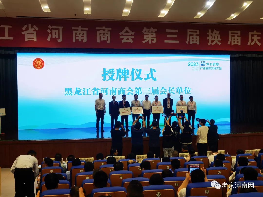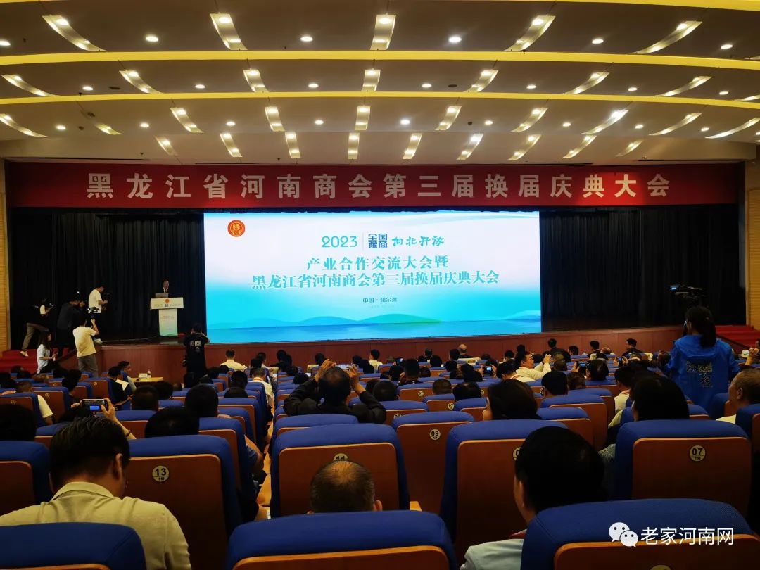 2023年9月2日下午,全国豫商向北开放产业合作交流大会暨黑龙江省河南商会第三届换届庆典大会在哈尔滨国际会展中心华旗饭店举行。本次活动由黑龙江省商务厅、黑龙江省工商联、河南省豫商联合会主办,哈尔滨市企业和投资服务局、哈尔滨市工商联协办,黑龙江省河南商会、哈尔滨市新区管委会承办。全国各地的豫商商会会长和知名企业家纷纷应邀参加,近500名嘉宾来到黑土地,相聚哈尔滨,共商发展新机遇。