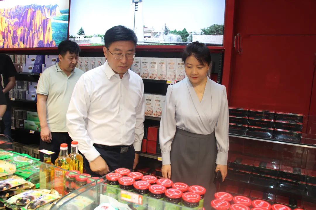 在商会“津甘协作发展基地”、“甘味农产品天津展销中心”和“甘南农畜产品暨旅游商品馆”,马爱琴会长重点介绍了商会建设发展情况和参与东西部协作、承接消费帮扶等具体工作,以及甘肃“甘味”特色农产品,尤其是榆中县农产品的采购渠道和在津销售情况。