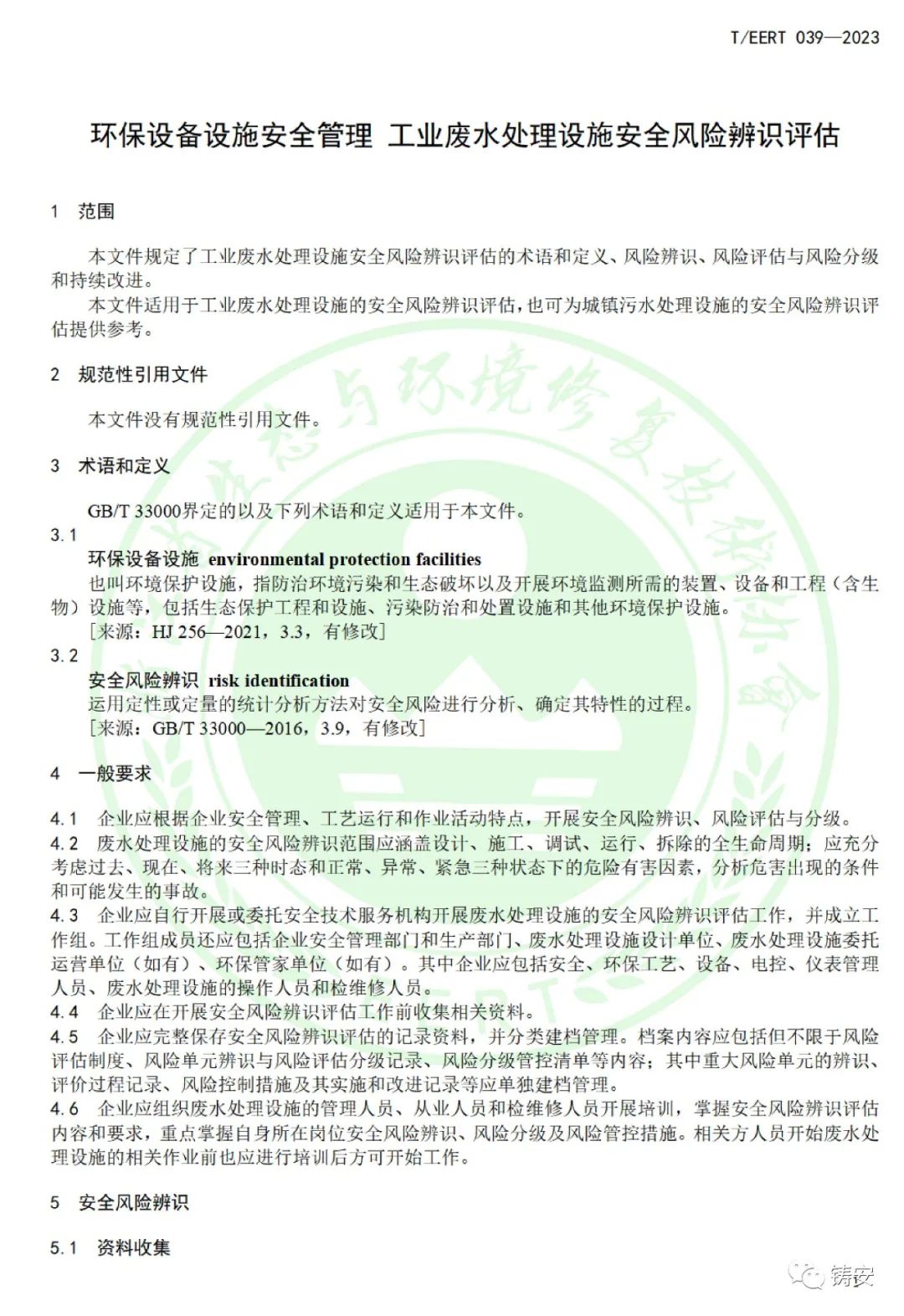 TEERT039-2023 环保设备设施安全管理 工业废水处理设施安全风险辨识评估