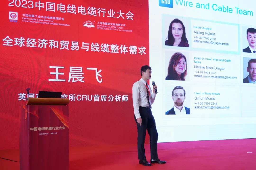 当天下午,在远东控股集团远东电缆产业首席执行官陈静的主持下,国家电线电缆质量检验检测中心副主任范玉军,上海电缆研究所有限公司行业咨询部蒋强,英国商品研究所CRU首席分析师王晨飞三位行业专家,分别作《现阶段国内电线电缆的质量状况》《中国电线电缆产品进出口分析》《全球经济和贸易与线缆整体需求》的专题报告。