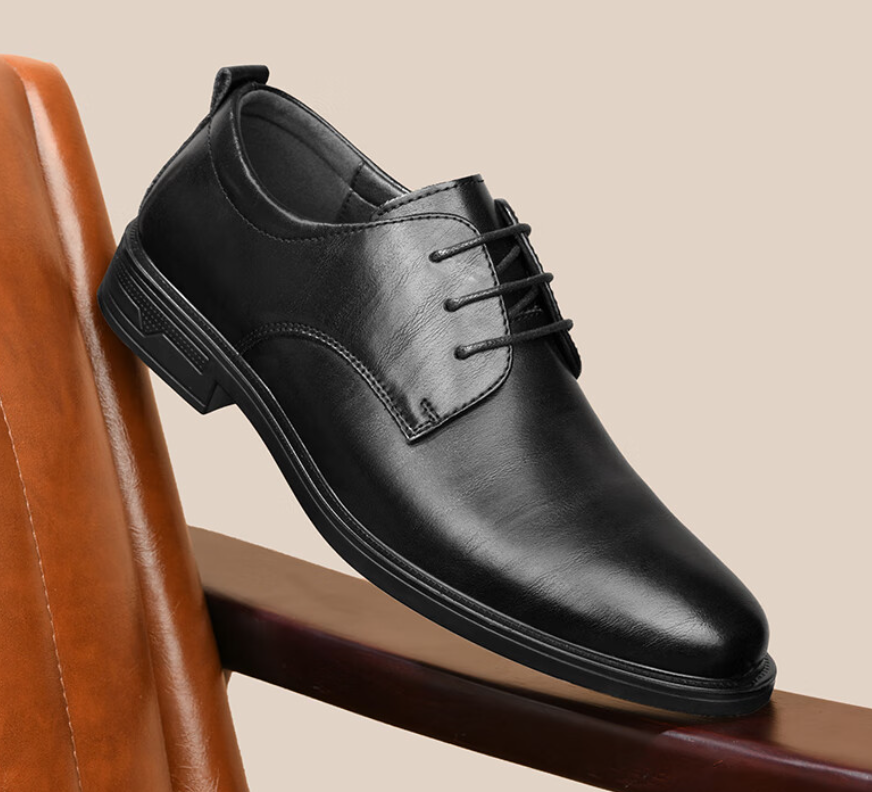 2、HLA海澜之家皮鞋男士系带商务正装质感光面透气舒适办公德比鞋子男HAAPXM3AA90183 黑色