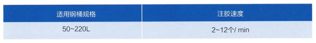该产品主要根据工艺过程要求对50-220升钢桶底盖注胶,主要由三卡轮旋转机、注胶筒、注胶枪、电气控制系统等部分组成。