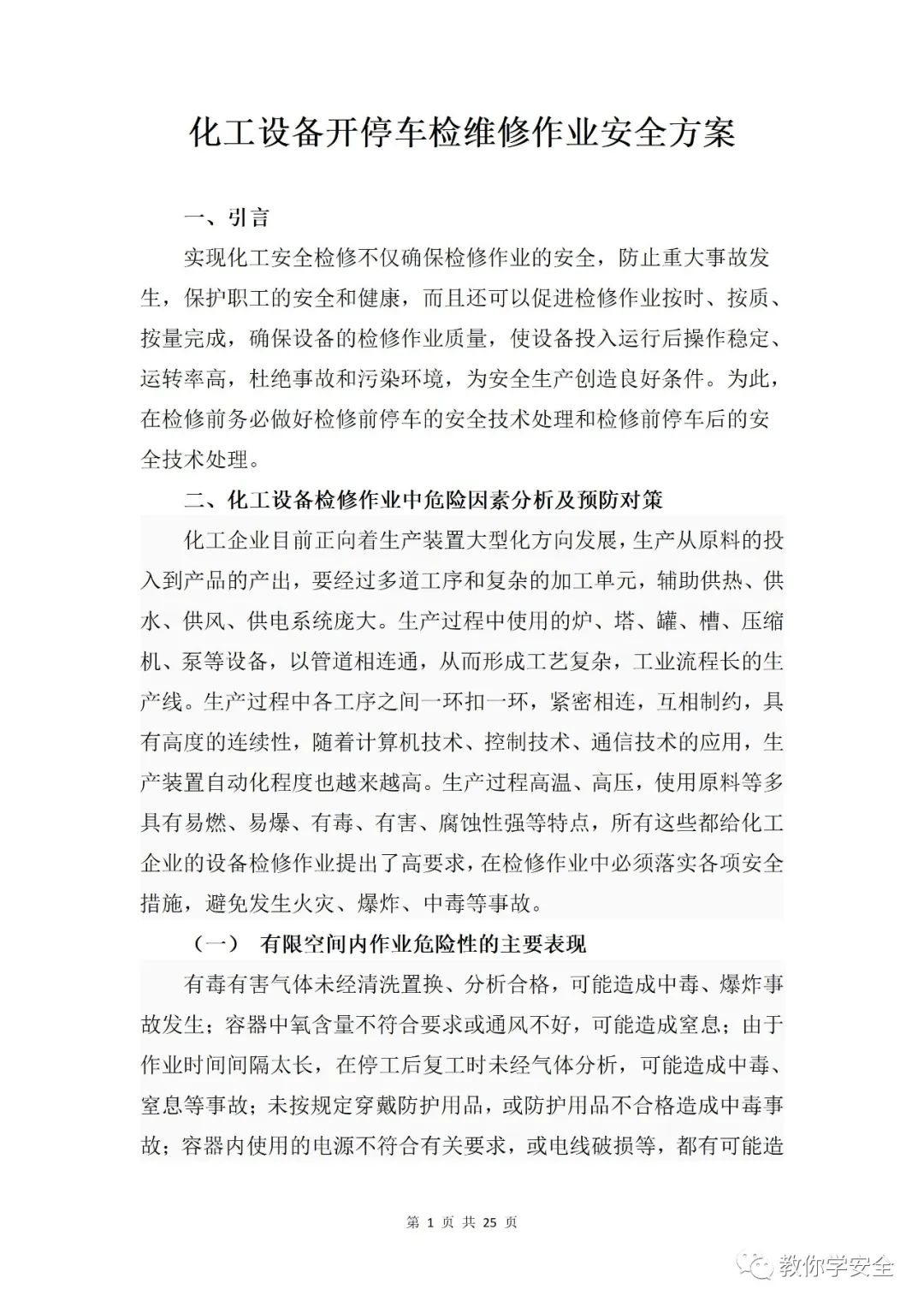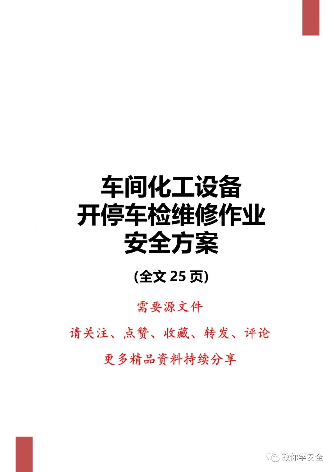 【EHS文件】车间化工设备开停车检维修作业安全方案