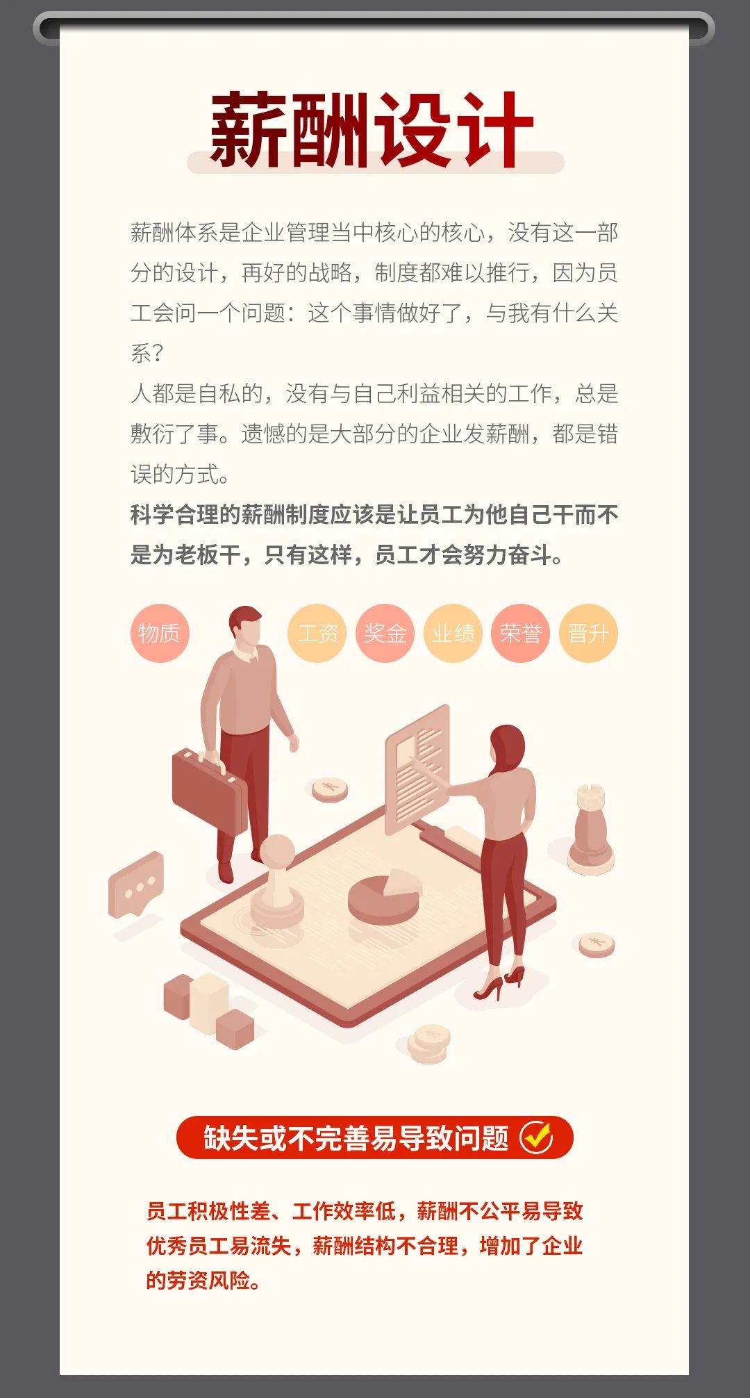 不仅要建立一套完善的工作分析体系,还要建立绩效考核机制,对员工胜任力进行评价和量化,还要将薪酬设计以及晋升与考核结果挂钩,也就是薪、晋、考三维一体。公司管理靠人来管人非常难,用机制来驱动人、激活人、各司其职,管理将变得高效、有结果!