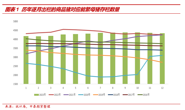 2023年出栏的商品猪对应能繁母猪存栏周期为2022年2月至2023年2月份,该阶段的能繁母猪存栏情况具有三个显著特点:
