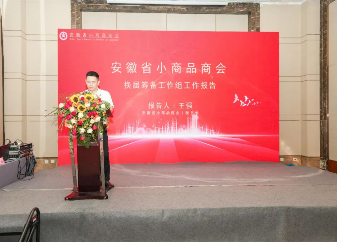 换届筹备小组副组长(安徽省小商品商会秘书长)王强在会议中代表换届筹备小组作工作报告。报告中指出:关于大会的指导思想、基本原则和主要任务,关于代表名额的产生办法和比例,关于第三届执委会的工作报告,关于选举办法等。