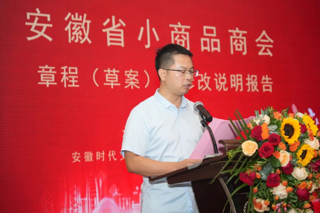 安徽省小商品商会副会长周准宣读《安徽省小商品商会章程(草案)》及《修改说明》,安徽省小商品商会《会费收取及管理办法》,经会员(代表)大会审议通过。