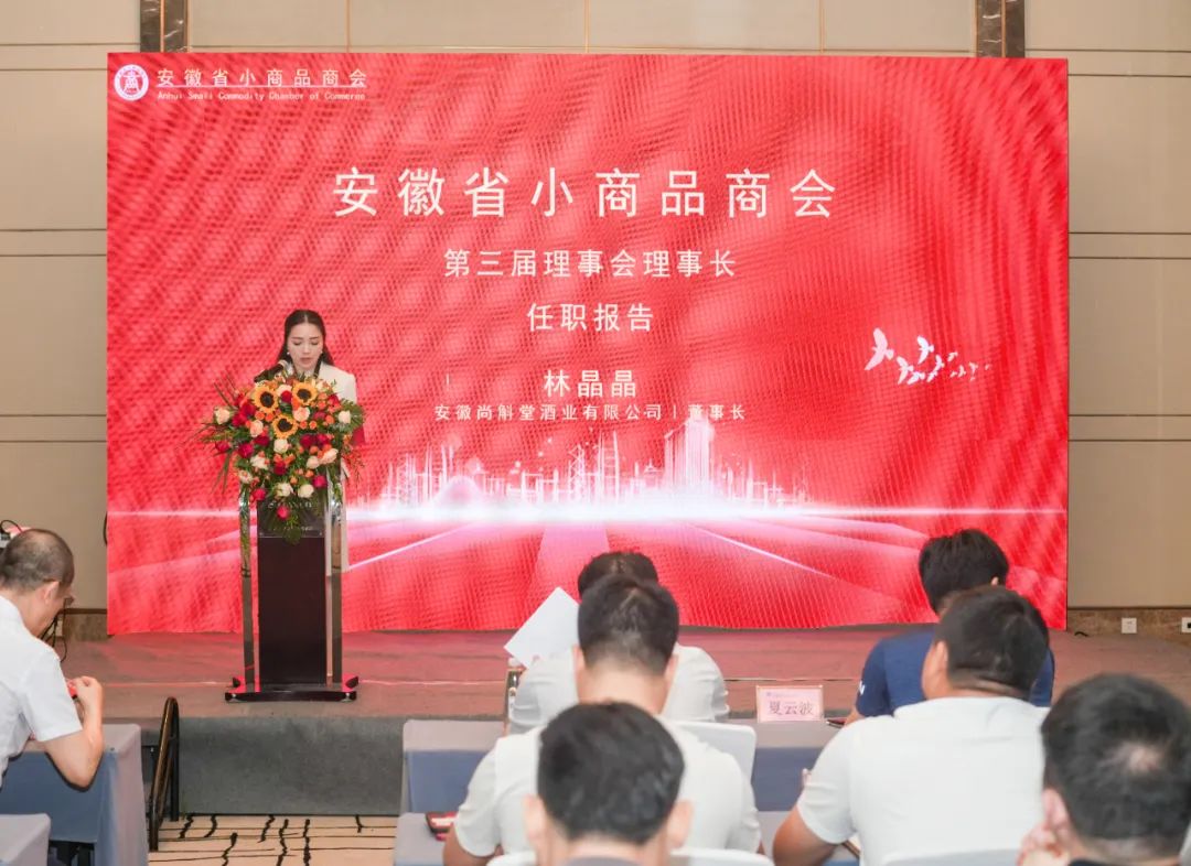 随后安徽省小商品商会第三届会长林晶晶作任职报告。报告中指出:商会换届以后,将积极努力做到以下几点:一要自觉接受政府及有关部门的领导和管理,加强商会和政府有关部门的沟通联系,积极发挥好桥梁和纽带作用;大力推动与安徽工商界的交流合作,推进“双招双引”搭建行业发展平台,为安徽省的经济建设和各项社会事业发展作出新贡献。二要及时向会员宣传党和政府的有关方针、政策、法规,提供政策法律咨询和各种信息服务,教育引导全体会员诚实守信、公平竞争,并积极向政府和有关部门反映会员的合理意见、建议,切实维护会员的合法权益,使商会真正成为会员们温暖的家。三要大力促进会员间的经营、业务、信息等交流,开展好咨询、培训、商务洽谈、展览展销等活动,增进会员间的相互服务往来和团结合作。四要加强横向联系,加大对小商品商会的宣传力度,按照办会宗旨打响安徽省小商品商会品牌,提高商会知名度;增强会员的社会责任感,展现商会的新使命、新担当、新作为。