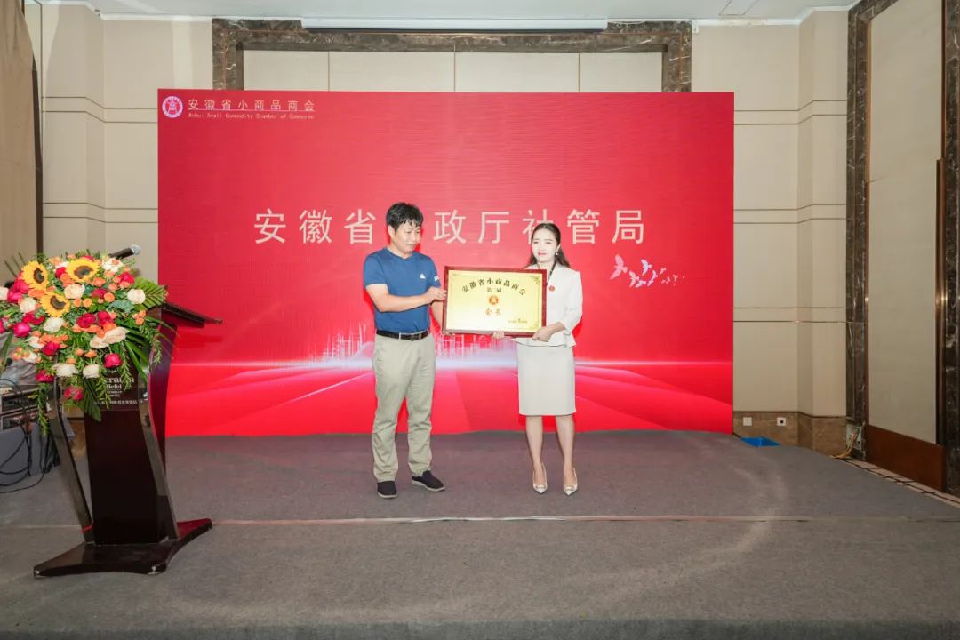 最后,在会员(代表)热烈的掌声中,安徽省民政厅社会组织管理局副局长夏云波、安徽省工商联机关党委专职副书记时方勤为第三届安徽省小商品商会会长林晶晶、监事长储永忠进行授牌并致词。