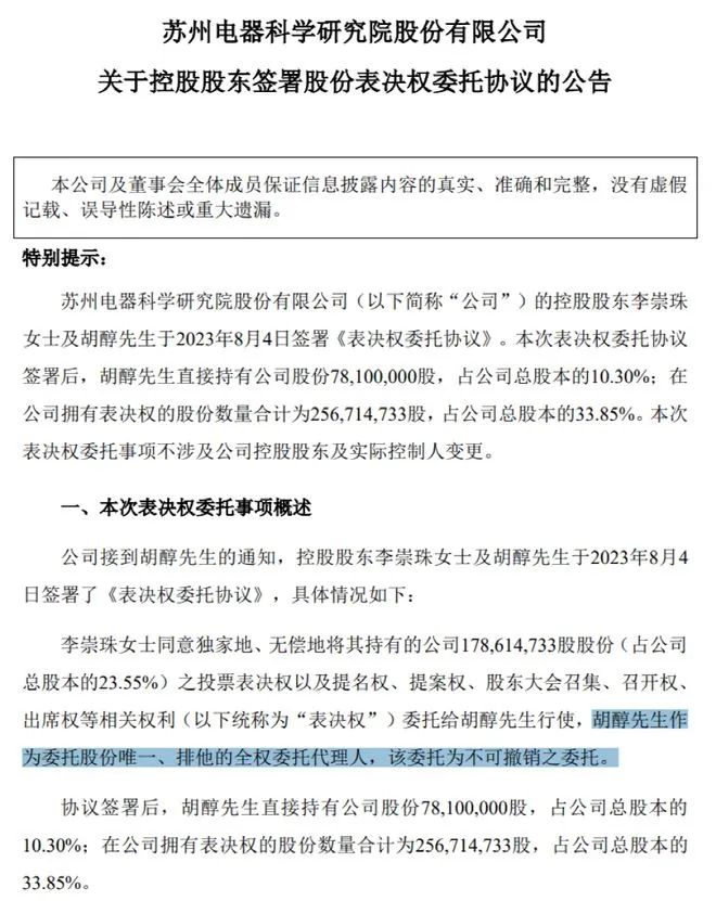 2022年12月,电科院公告称,此前,胡德霖因考虑个人身体健康方面的原因可能无法正常行使作为电科院股东的表决权,将表决权委托给胡醇行使,但现在影响因素已排除,胡德霖决定解除协议,终止与胡醇的表决权委托关系。