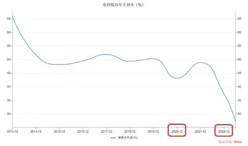 WIND数据显示,2014年-2019年、2021年,电科院的毛利率一直在50%上下波动,2014年前更高;但在2020年、2022年,公司毛利率分别为43.18%、37.52%。