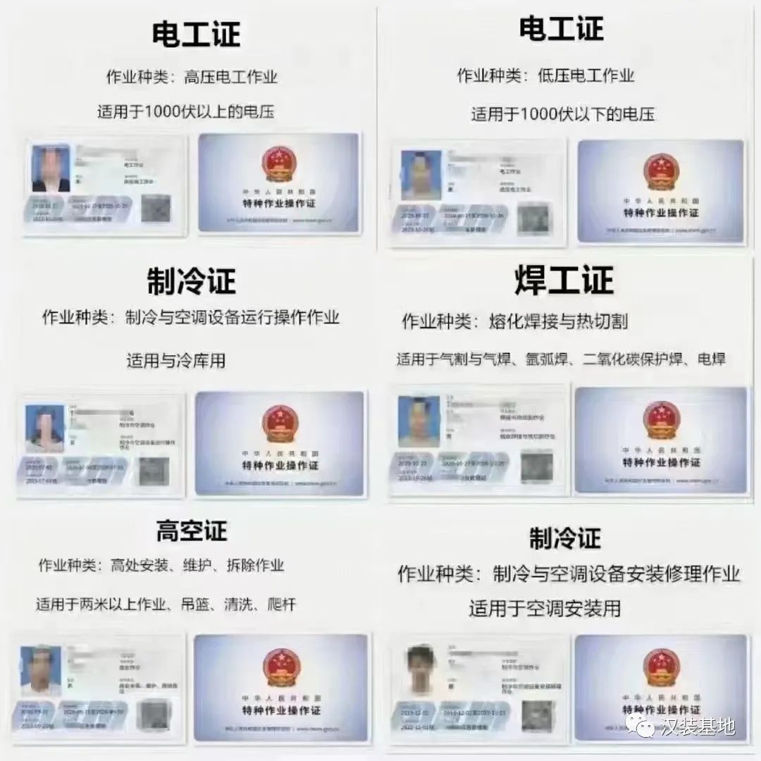 工种齐全: 高压、低压、焊工、高处作业、电力电缆、电气试验、空调制冷;