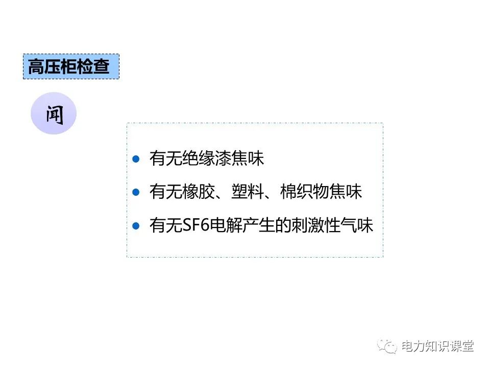l开关柜有无异常的声音及气味。