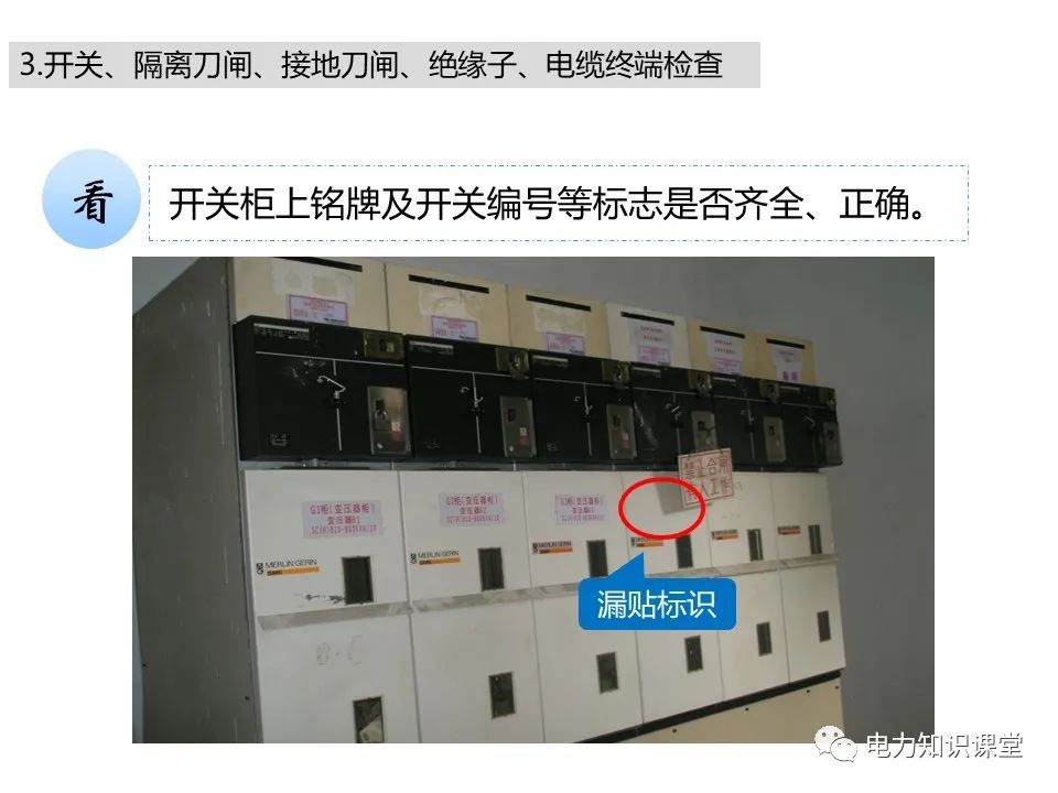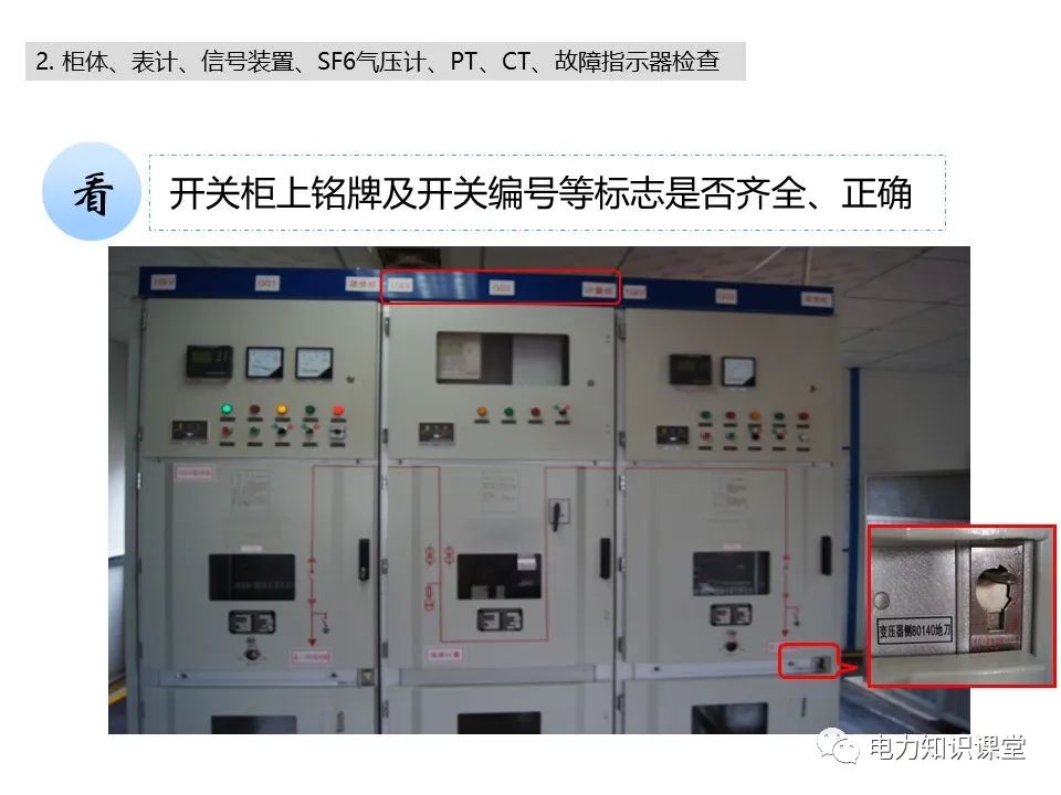 l开关柜上铭牌、分合闸位置指示及开关编号等标志是否齐全、正确。