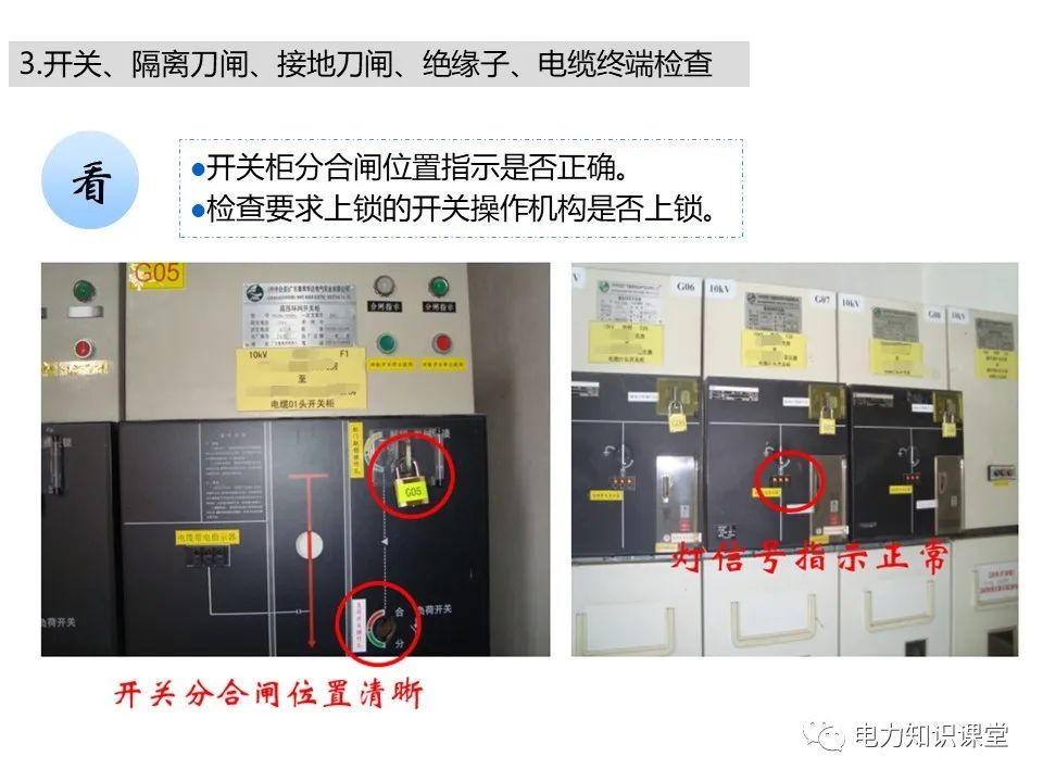 l开关柜上各种保护信号指示是否正常,保护压板位置是否正确。