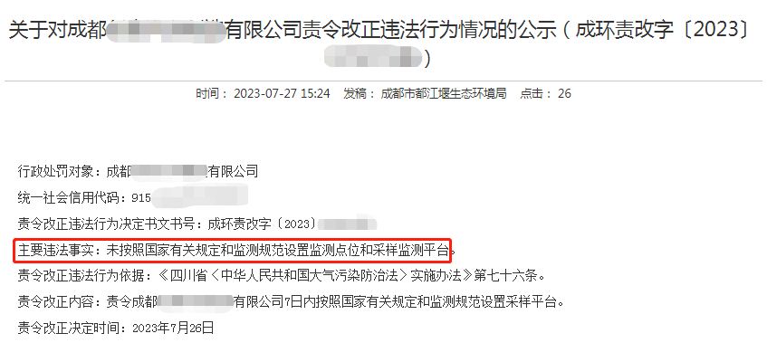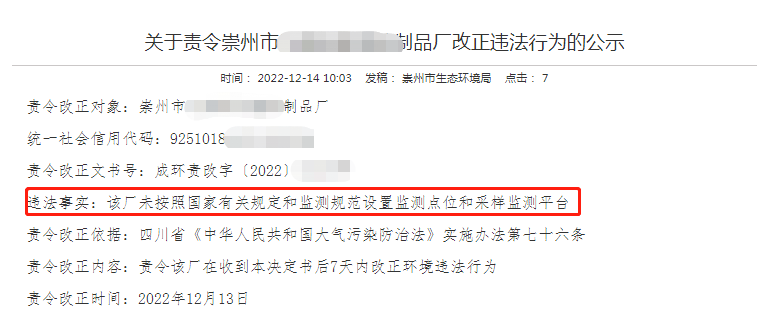 第七十六条 违反本实施办法第十六条第一款规定,未按照规定设置监测点位或者采样监测平台的,由县级以上地方人民政府生态环境主管部门责令限期改正;逾期不改正的,处二万元以上二十万元以下的罚款。
