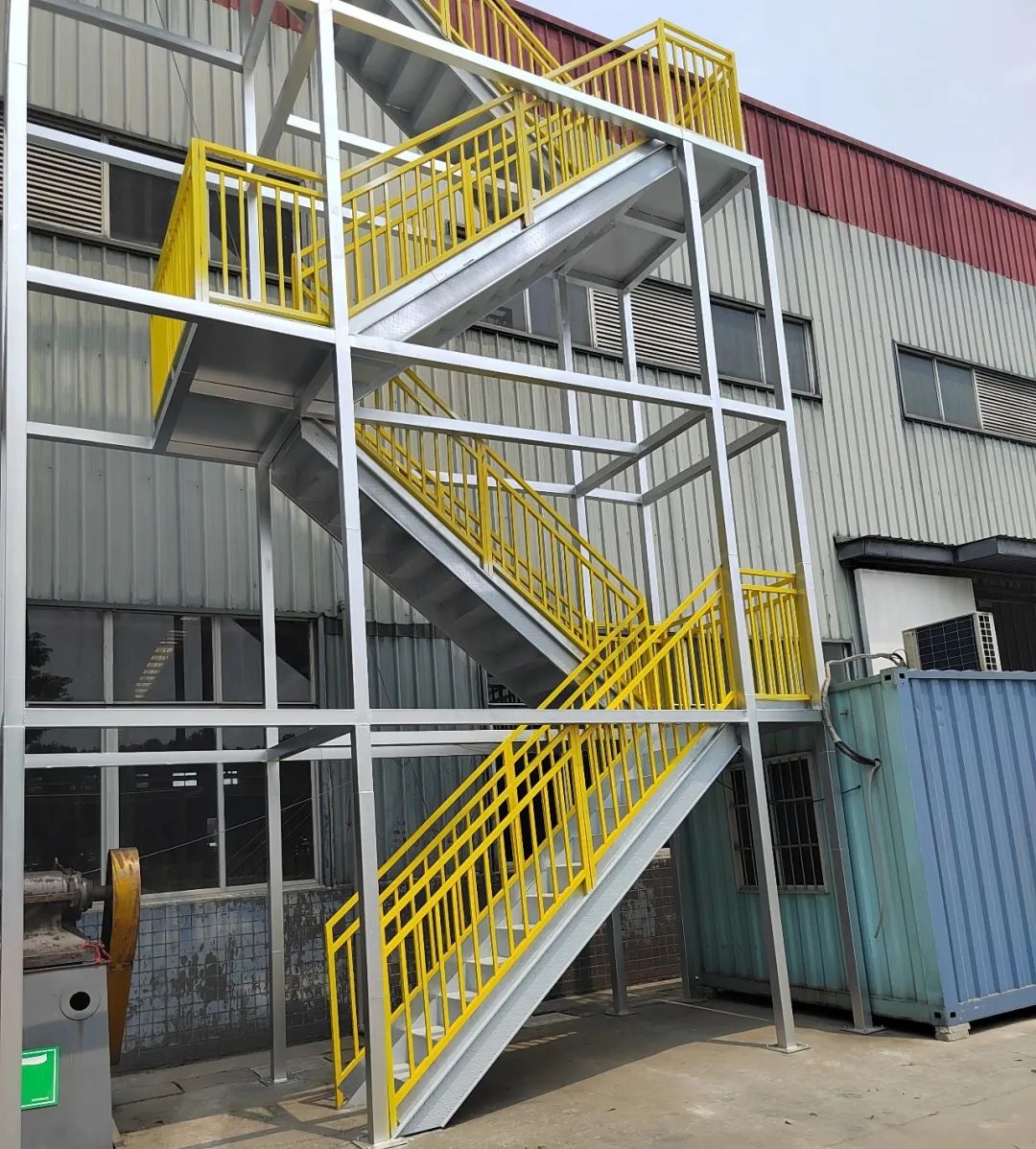 整改前:平台窄小老旧,直爬梯,开孔位置不规范,平台不牢固,存在安全隐患。