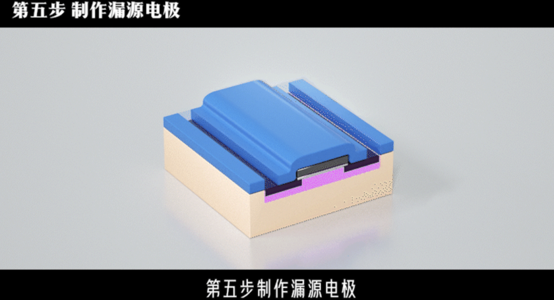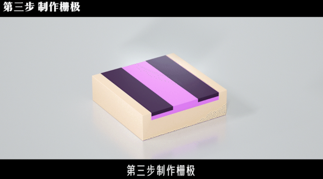 (3)制作栅极。在源极与漏极之间区域,采用高温氧化工艺制作栅极氧化层,并沉积栅电极层,形成栅极(Gate)控制结构。