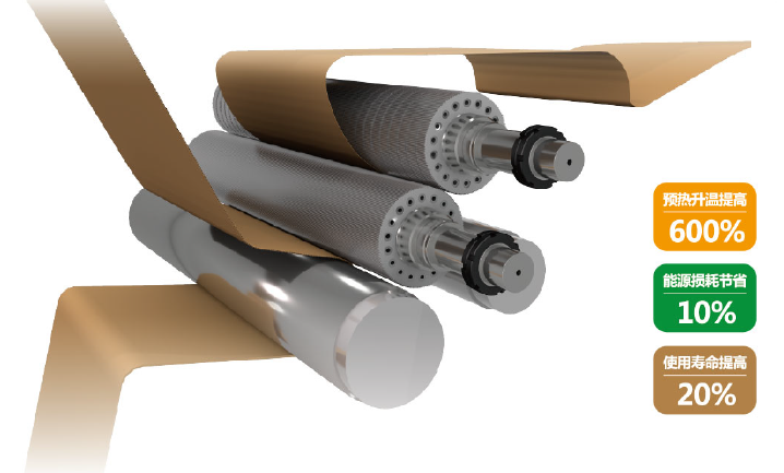 突破传统加热方式,采用瓦楞辊筒体表