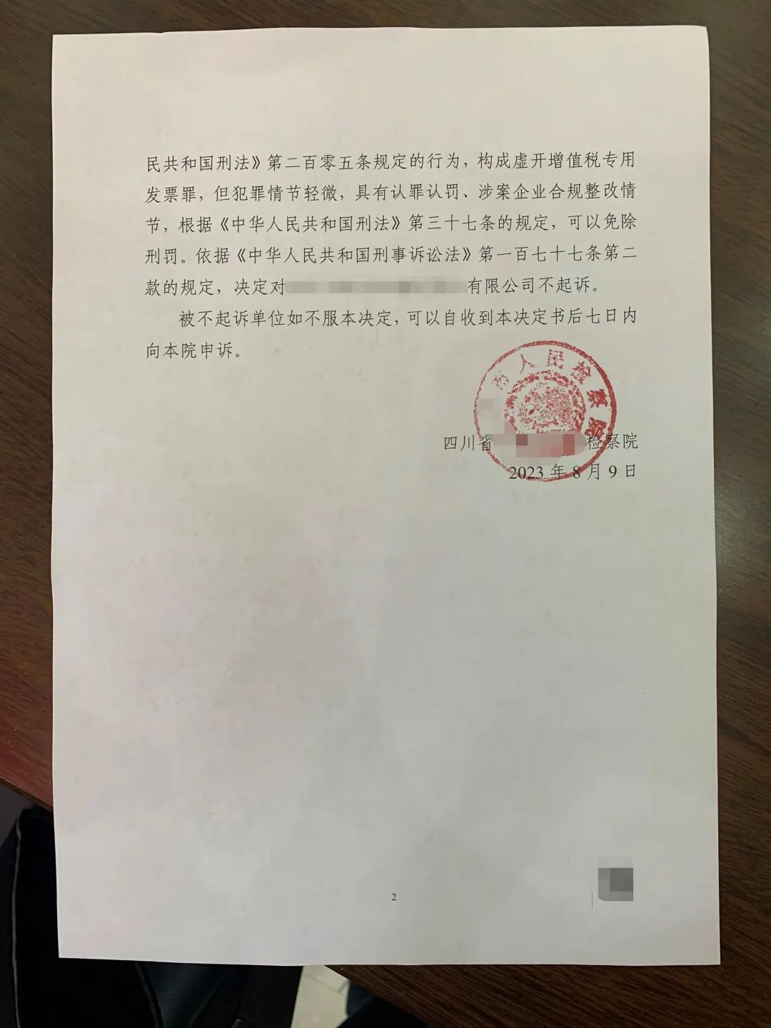 2023年8月,检察机关在经过认真评估后认为,涉案企业A公司及涉案员工B构成虚开增值税专用发票罪,但犯罪情节轻微,认罪认罚,并完成了涉案企业合规整改,根据《中华人民共和国刑法》第37条的规定,可以免除处罚,依据《中华人民共和国刑事诉讼法》第177条第2款的规定,决定对涉案企业A公司及涉案员工B不起诉。