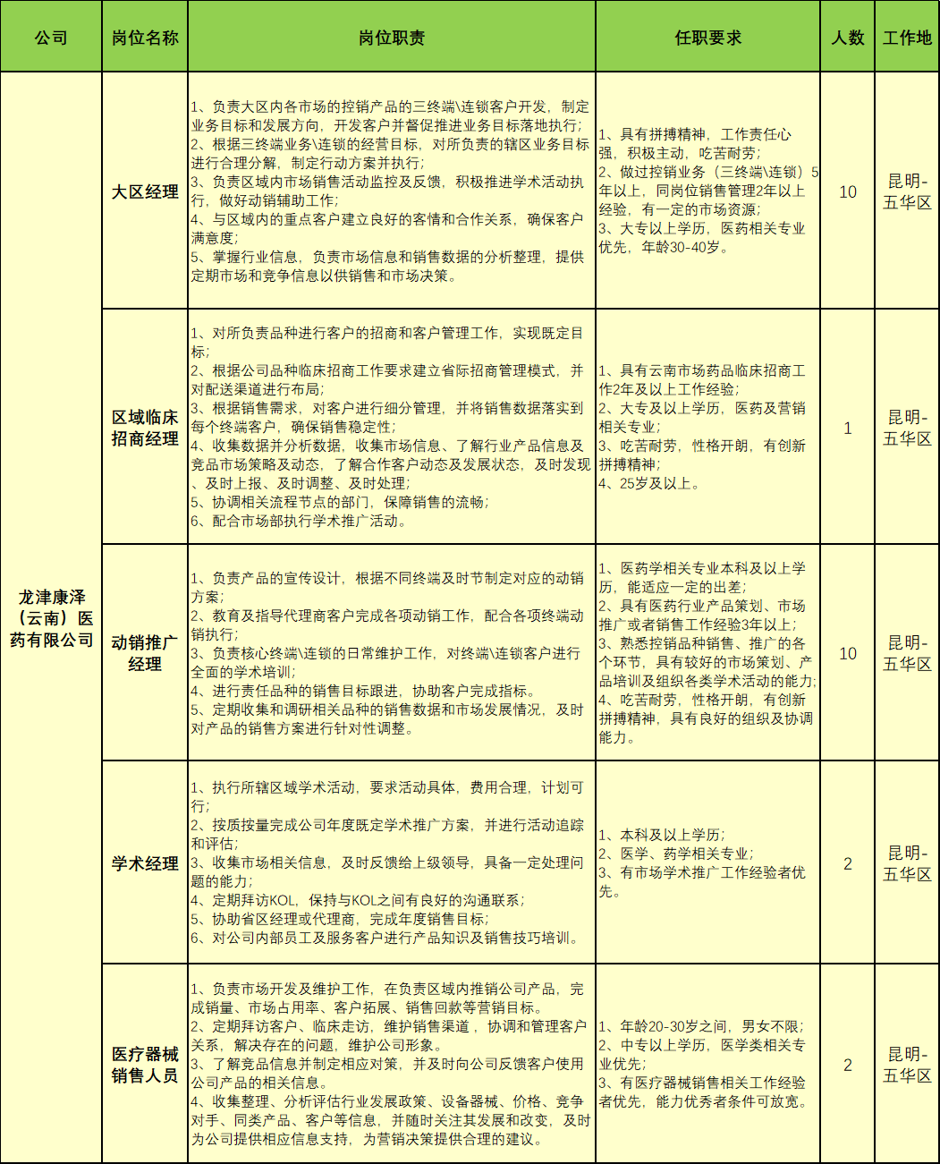 【云南昆明】昆明龙津药业股份有限公司招聘药学人员