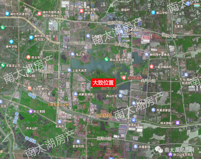 位于湖州市吴兴区八里店镇西山漾景区南侧。