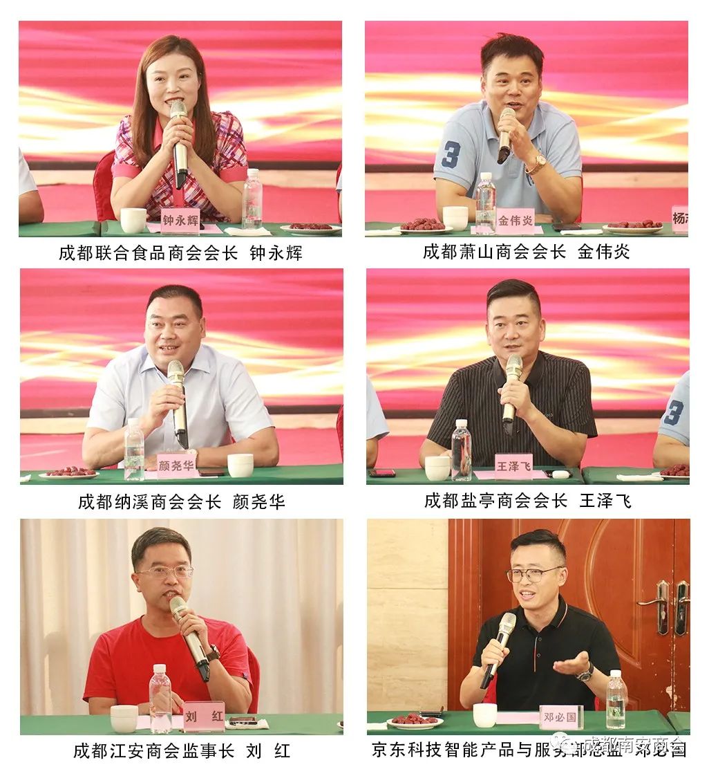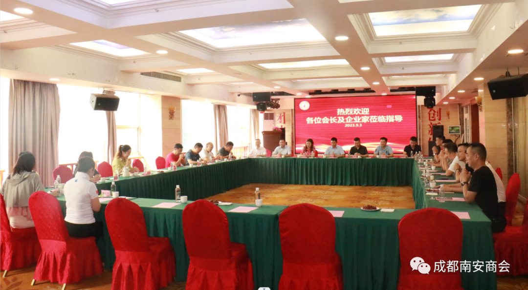 为促进商会之间互联互通、共享共赢,2023年9月3日下午,成都联合食品商会会长钟永辉、成都萧山商会会长金伟炎、成都纳溪商会会长颜尧华、成都盐亭商会会长王泽飞,成都江安商会监事长刘红率商会主要领导莅临成都南安商会考察交流。成都南安商会会长阮启礼,执行会长许德阳,值班常务副会长杨志艺,常务副会长洪志扬、黄伯龙,执行秘书长王小波,会长助理黄小灵参加座谈交流活动。