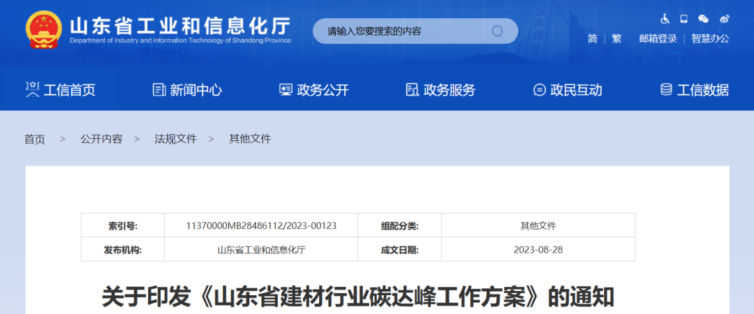 现将《山东省建材行业碳达峰工作方案》印发给你们,请认真贯彻落实。山东省工业和信息化厅