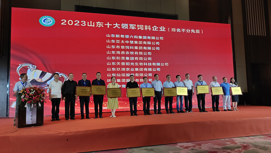 本次大会还对“2023山东十大领军饲料企业”、“2023山东家禽配合饲料企业十强”、“2023山东生猪配合饲料企业十强”、 “2023山东添加剂预混合饲料企业十强”、“2023山东饲料添加剂企业十强”、“2023山东混合型饲料添加剂企业十强”、“2023山东饲料原料企业十强”、“2023山东创新型饲料企业”、“2023山东成长型饲料企业”、“2023山东饲料行业突出贡献单位”,“山东饲料行业功勋人物”、“山东饲料行业卓越人物”、“山东饲料行业领军人物”、“山东饲料行业管理英才”、“山东饲料行业技能工匠”、“山东饲料行业先进工作者”的部分代表举行了牌匾和证书颁发仪式。