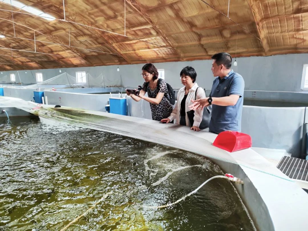 2023年8月30日国家海水鱼体系加工岗位科学家吴燕燕、中国水产流通加工协会副秘书长王悦一同来到唐山海都,参观了育苗车间、水产种质资源场等,进行海都水产品和预制菜的调研,唐山海都水产食品有限公司副总经理王爱新陪同参观介绍。