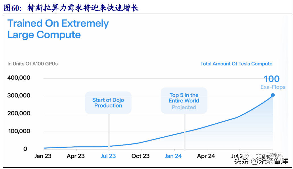 3.1.1、 特斯拉自研算力平台 Dojo,2024 年冲刺 100EFlops 算力