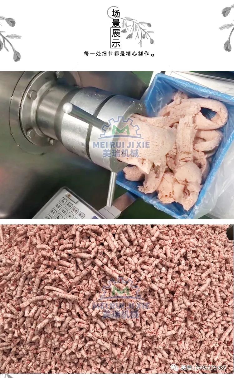 冻肉绞肉也叫做冻肉碎肉机,是一款专门把冻肉绞碎成肉末的机器,在冻肉加工深加工厂用的非常多,比如在肉丸作坊和肉丸加工厂里面用来加工肉丸、在饲料加工厂用于做鱼饲料、宠物饲料等等。冻肉绞肉机听名字就知道是专门加工冻肉的碎肉设备,那么加工冻肉和加工鲜肉有的绞肉机有什么区别呢,有没有既可以绞冻肉也可以绞鲜肉的绞肉机呢?