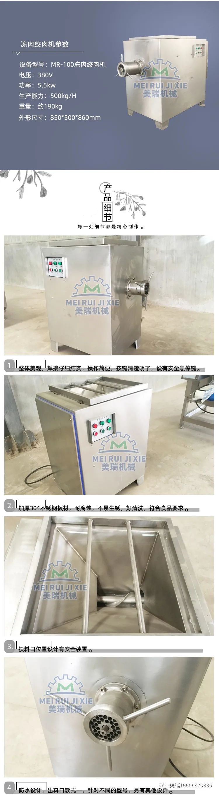 公司绞肉机与原料肉接触的部位均采用优质304不锈钢材料制作,结构设计易于拆卸清洗,绞龙轴导程大、入料口大、进料通畅、生产效率高,整机的使用效果高而且耐用度高等的深受客户的使用古好评,而且对于机器我们都是一直处于不断的改进和更新的状态的达到更好的使用的。